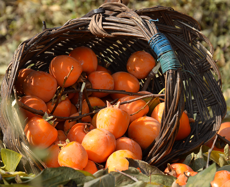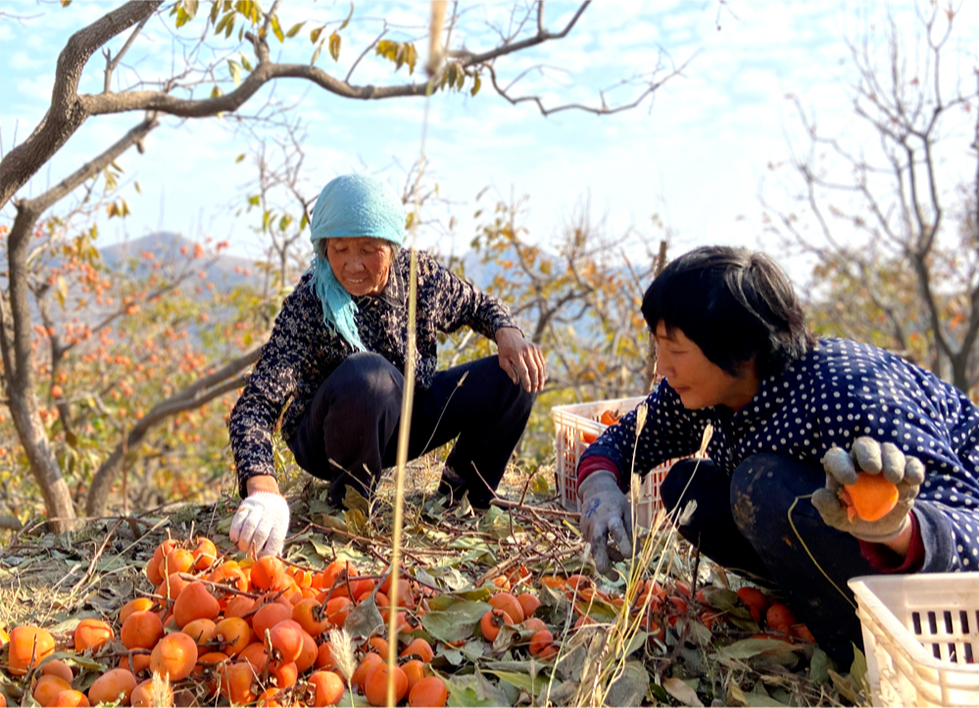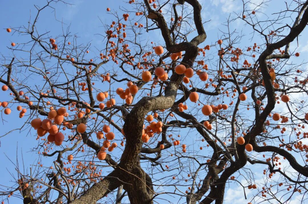 霜降时节的柿子个大、皮薄、汁甜,可谓达到了全盛状态,再熟就可能会软在枝头,必须抓住完美的时令!