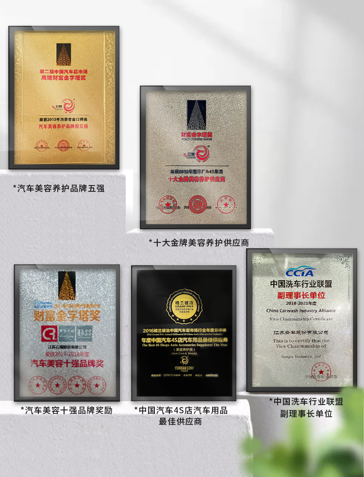 授权生产工厂为江苏云瀚,属于高新技术企业,拥有汽车养护品20余年的行业经验,在业内获得了良好的口碑和多项殊荣!