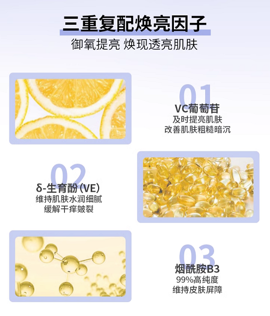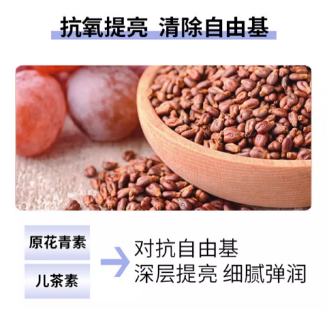 🌟葡萄籽中的原花青素和儿茶素便能很好地帮我们应对暗黄大坑,与自由基进行对抗,从而达到深层提亮,细腻弹润的效果。