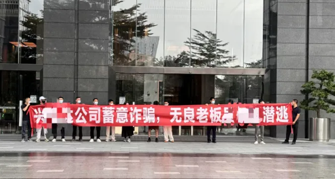 近日,深圳天安云谷写字楼前聚集了数十名跨境从业者,他们手持"兴**公司蓄意诈骗,无良老板潜逃!"等维权横幅,现场群情激愤。