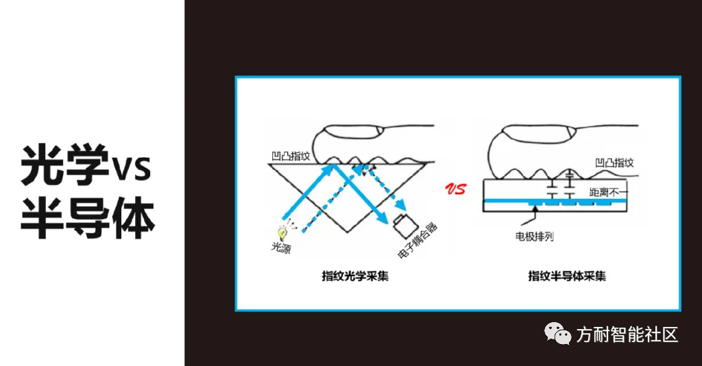 大家在挑选智能锁时一定要多注意指纹头技术,是光学的还是半导体的。市面上指纹锁普遍就分为两类:光学指纹识别和半导体指纹识别。有人说光学好,有人说半导体好,很多朋友被搞得一头雾水,不知道买哪一种,不都是指纹识别技术吗?!今天带你详细了解一下两者的优缺点对比。