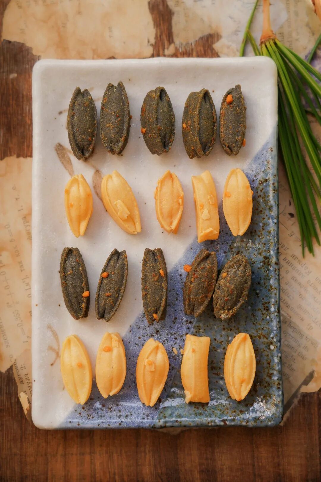 芝士味香浓郁,而且并不是市面上那种普通芝士饼干的调味哦!小小一颗薄脆,留给味蕾无限的芝士咸香~