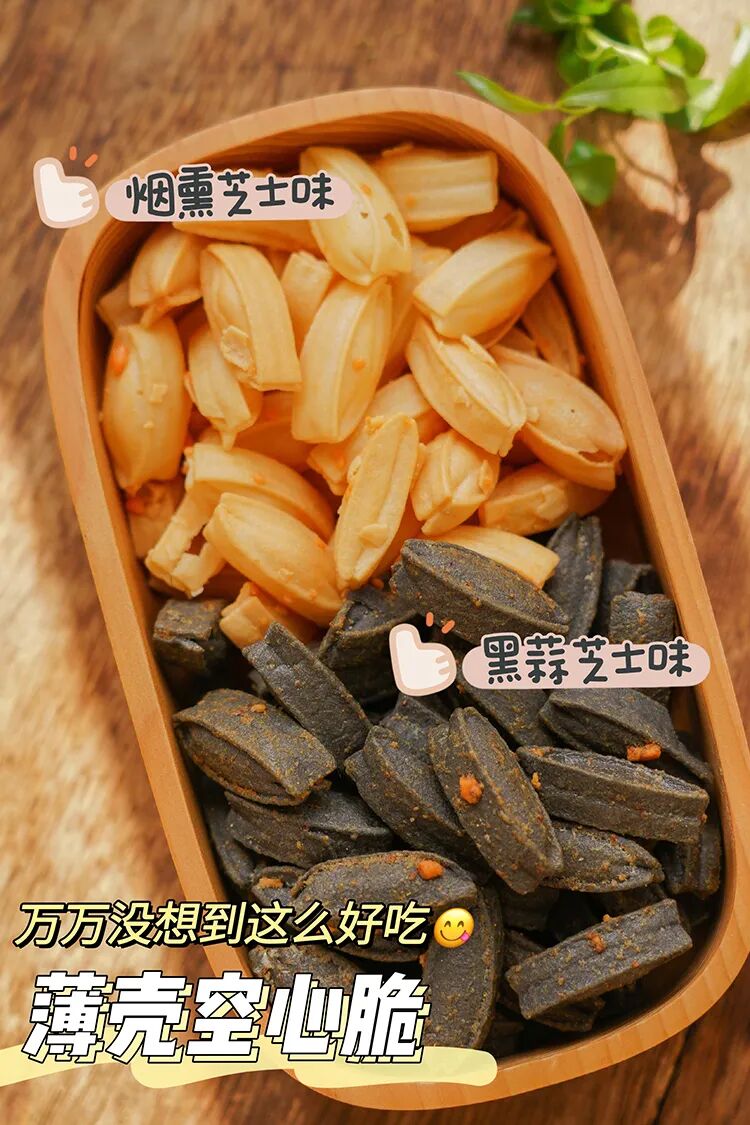 薄壳空心的结构让它吃起来是一种不一样的酥脆感,入口一抿,脆得掉渣,细嚼慢品,满口浓香!