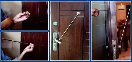 就算你锁了几扣,打开它也非常容易,所有开锁的人都有自己制作的开锁工具,打开门再关上,你都看不出有人开过你家门,这是文开,要是武开,用拿子一下就解决了。所以在离家时除了锁好主锁,还要把天地锁拧上,就算能打开也要费时费力。