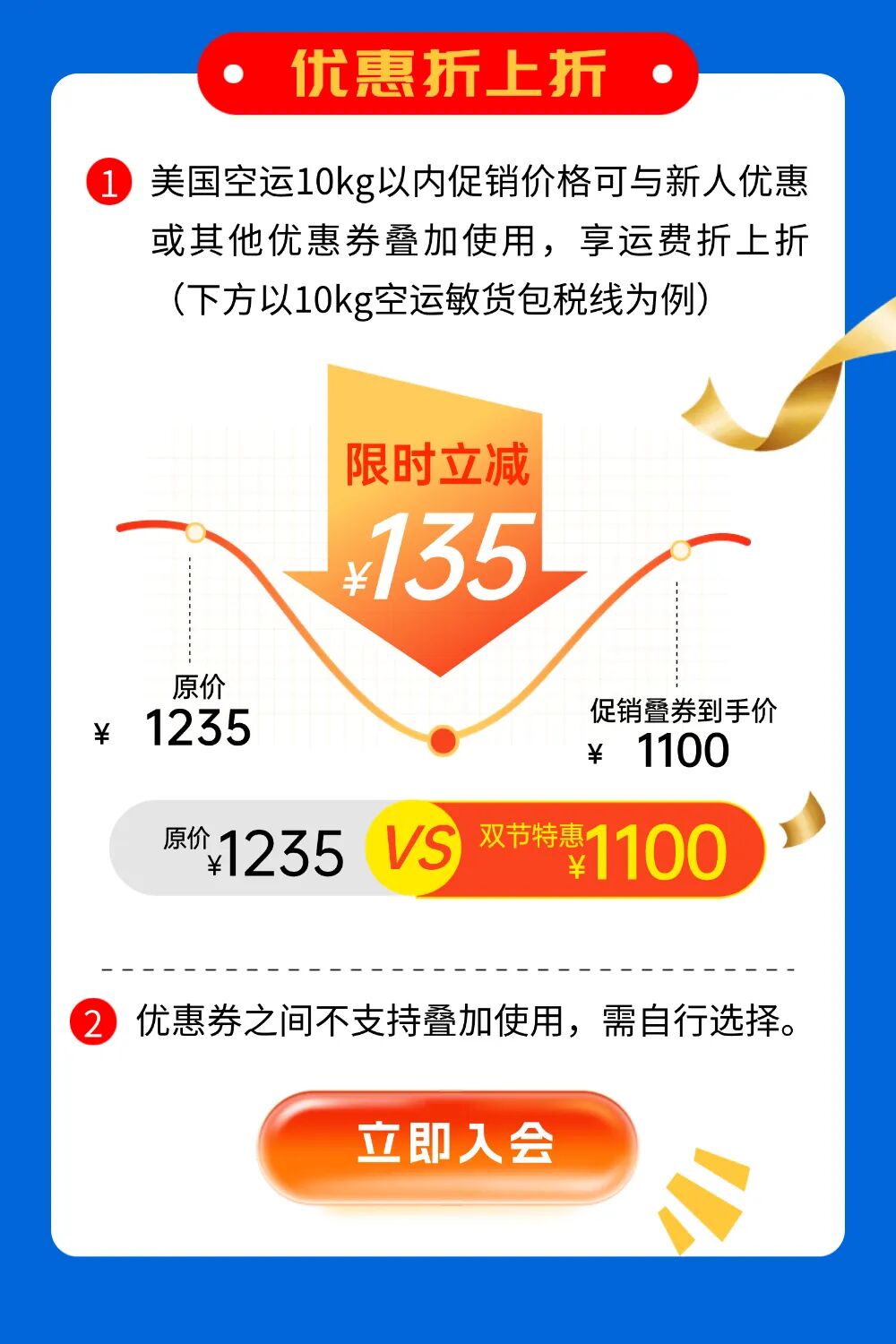 美国空运降价促销!新客注册领218元券包,享运费折上折,10kg直降135元!