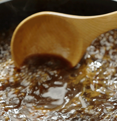 而在这一过程当中,鸡爪也由原来的微黄色变为被卤汁浸透的糖色状态,鲜亮透润,色泽诱人。
