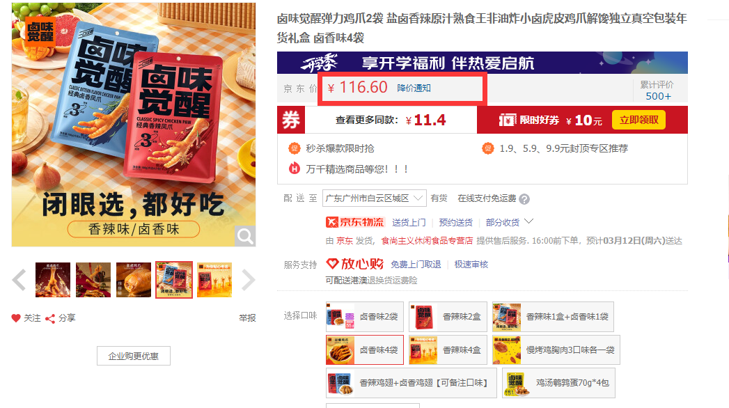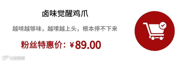 选择这款鸡爪就是因为卤味觉醒为了给吃货们zui佳的味觉体验,对待食物从不妥协、追求perfect!