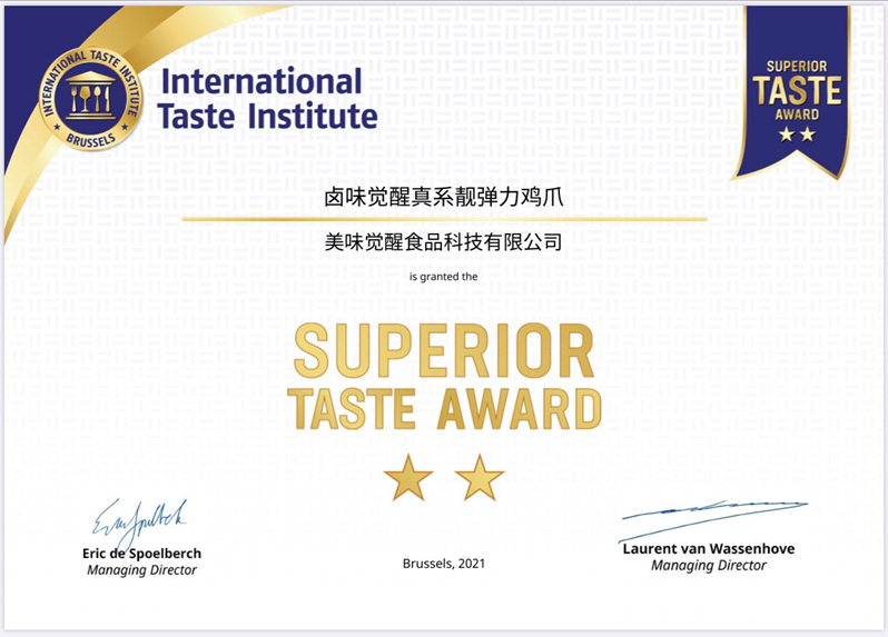 在2021年,这款鸡爪就获得了世界优秀味觉奖章2颗星,这个奖项是由140名米其林大厨组成的评委团队进行品鉴评选,被誉为“食品界中的奥斯卡”。