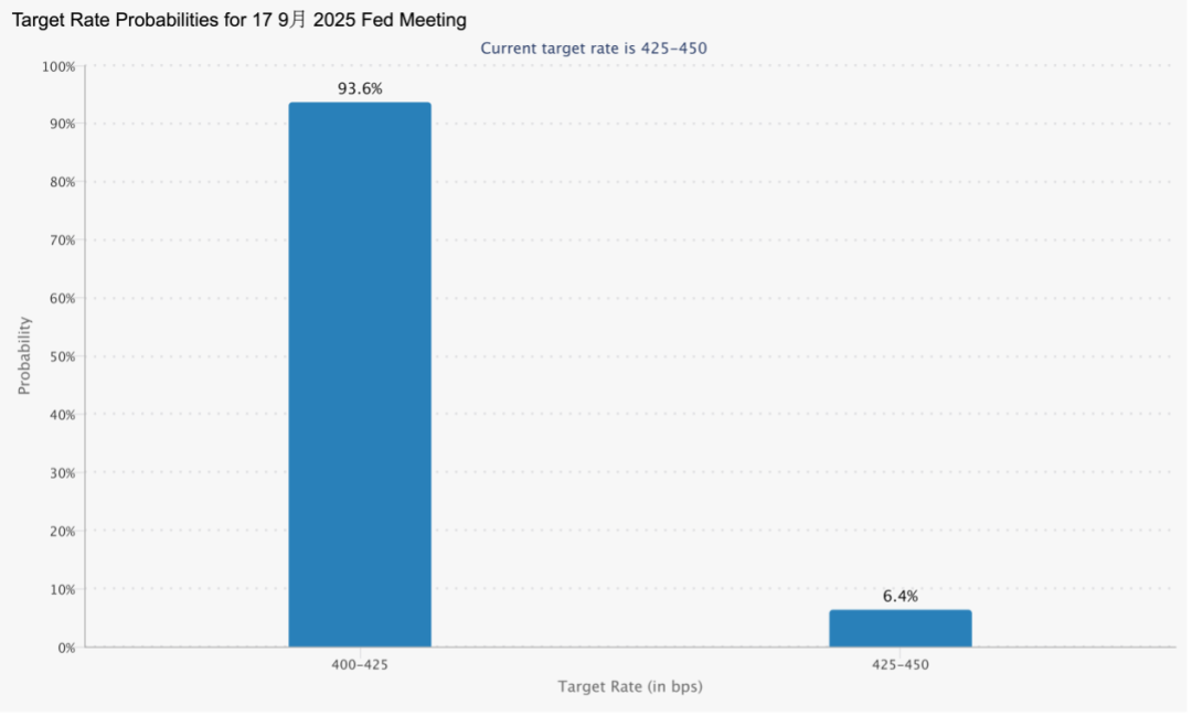一旦美联储政策转向宽松,美元将贬值,黄金也会因此得到支撑。目前9月降息概率升至 93.6%(引自“CME FedWatch”于北京时间2025.08.07早上发布的最新报告)。