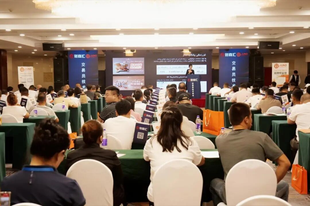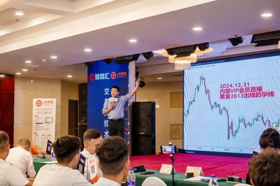 下午四点,JUNO MARKETS品牌代表在一片掌声中登台为会议开场致辞,她强调,这将是一场毫无保留的交易知识分享。