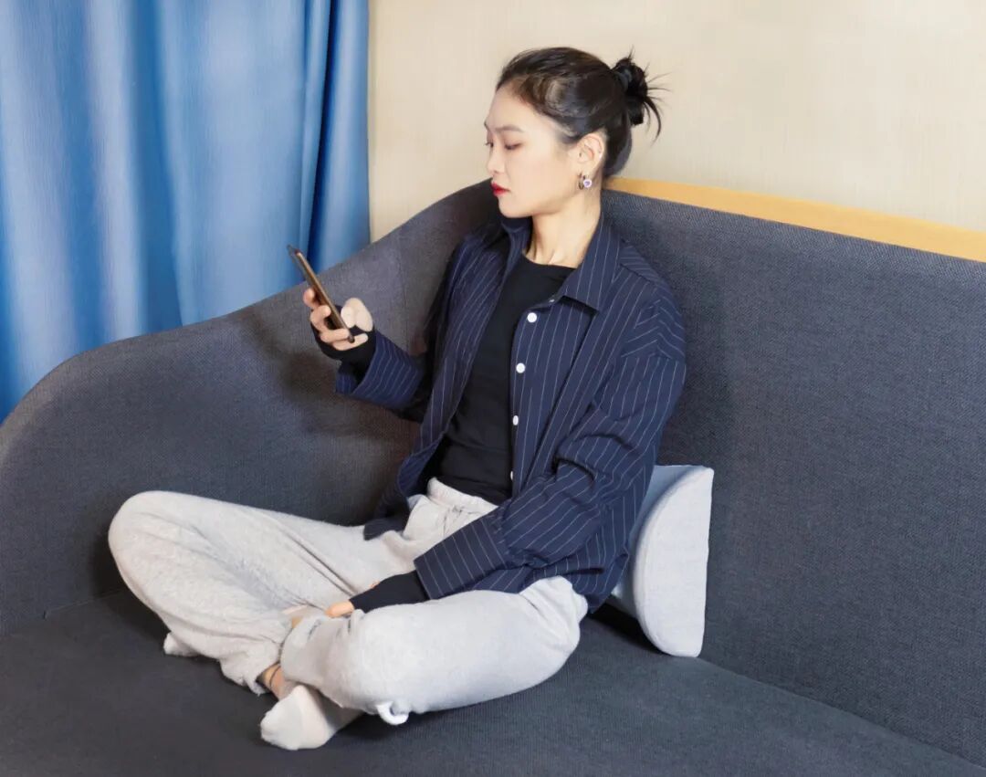 更重要的是,它既可以躺着一边休息一边放松,也坐着的时候放椅子上靠着。