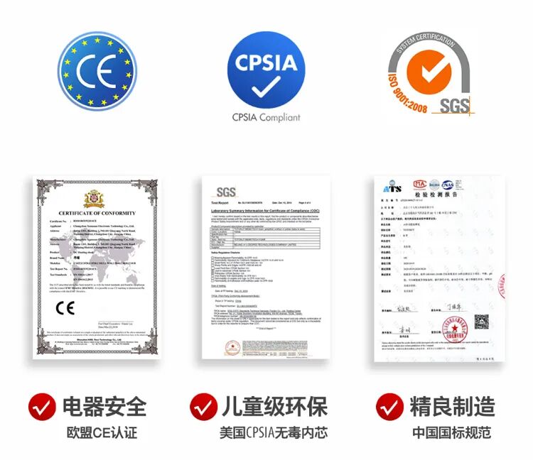 这款腰枕还通过了欧盟CE电器安全认证、美国CPSIA无毒环保认证以及中国国标检测。