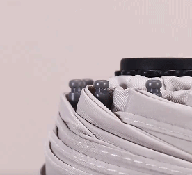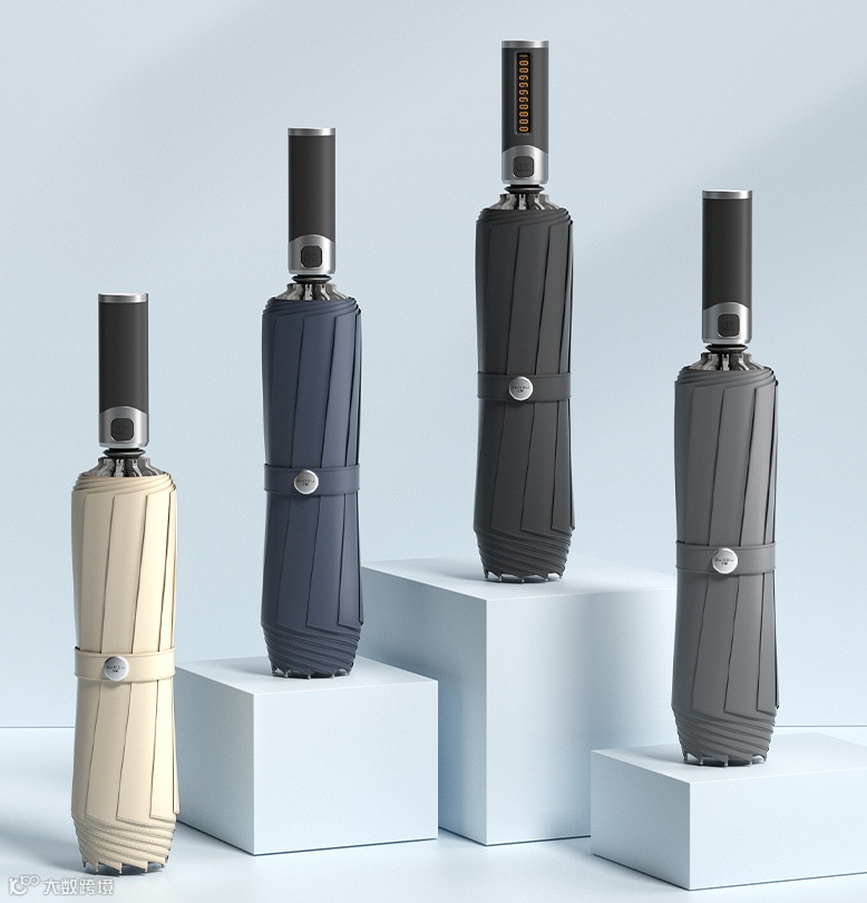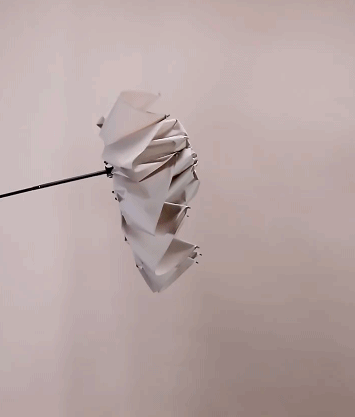 然后,你再潇洒地一按按键收拢雨伞,它的内部就自动翻折成外部。