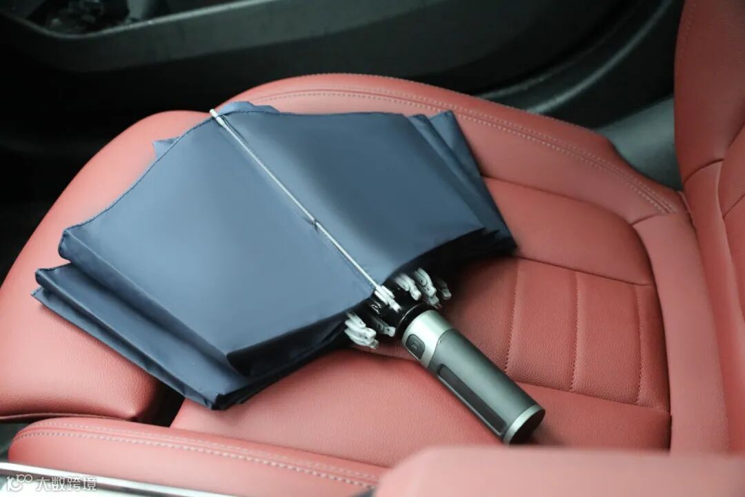 而反向伞的湿水面被包裹在内,上车后随便往哪里放都不用担心把车弄湿,直接放在座位上也没关系。