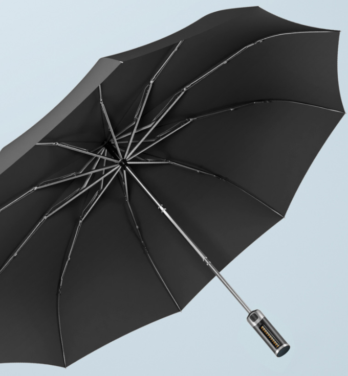 收伞时,同样一按按键伞就自动收拢,动作潇洒帅气、干净利落。