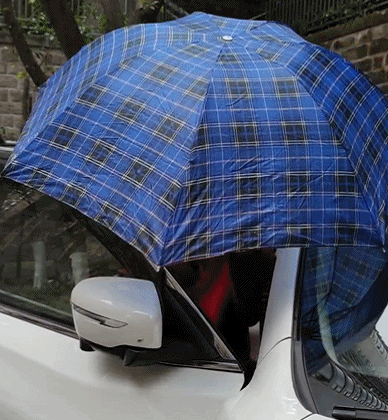 这可能是大多数开车族雨天面临的一大挑战,只要你手里拿的不是一把反向伞,你就会在上车收伞时被雨水淋得透心凉~