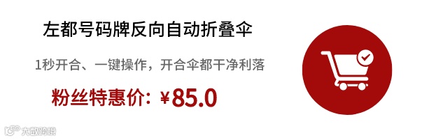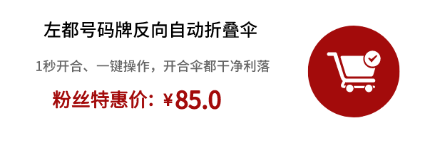 想要在下雨天出行也能心情美美哒,你就得拥有一把左都出品的停车牌反向伞,这可真是一把功能拉满的伞,下雨时它是雨伞,不下雨时放在车上还能当号码牌。