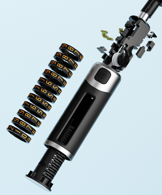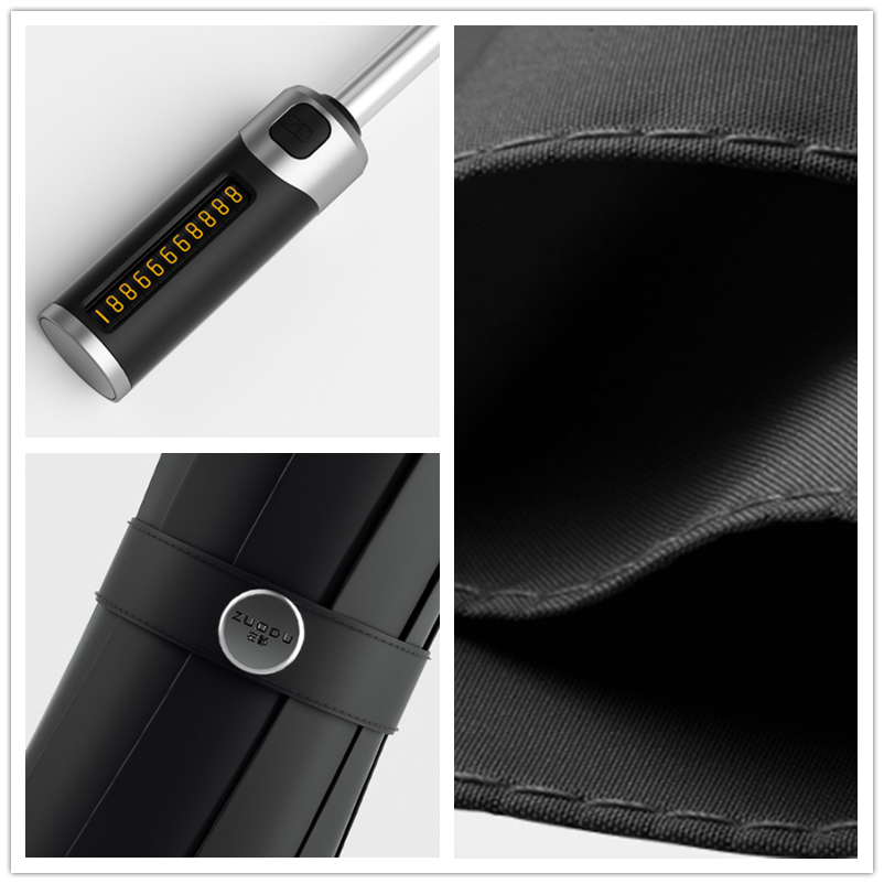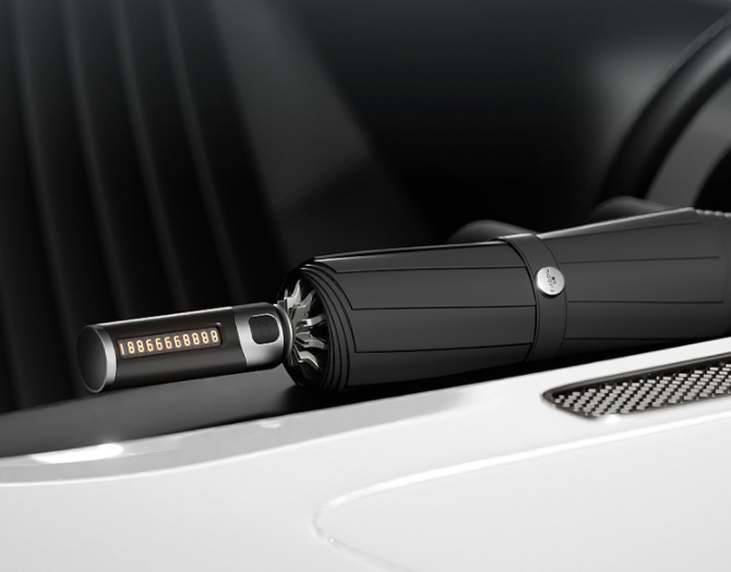 这把伞的手柄采用号码牌设计,停车时可以直接放在车子挡风玻璃处,它就担当起了号码牌的功能。