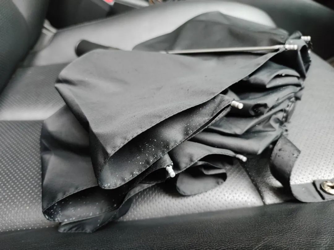 上车后,如果不是反向折叠的伞,湿漉漉的伞面就会直接暴露在外。