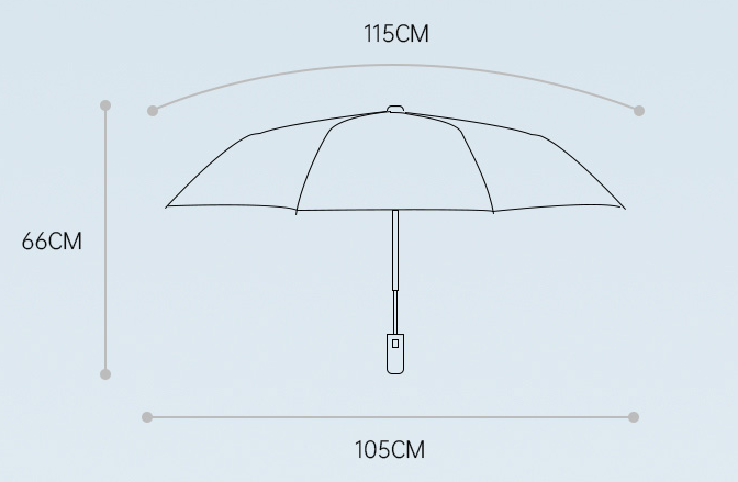 停车牌反向伞是大伞面设计,整伞撑开后伞下保护面积直径可达115㎝。