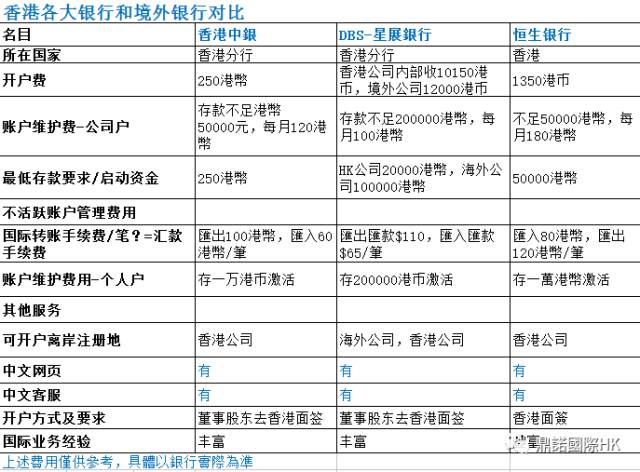 内部收费详情:存款不足港币50000元,每月扣取120港币,汇出:100港币,汇入65港币。