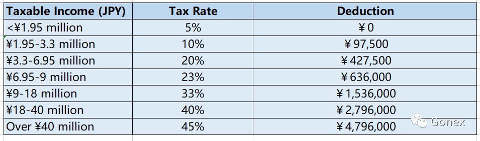 例如:一个应纳税所得额为800万日元的纳税人,税率为23%,缴纳120.4万日元的税(800万*23%-63.3万)