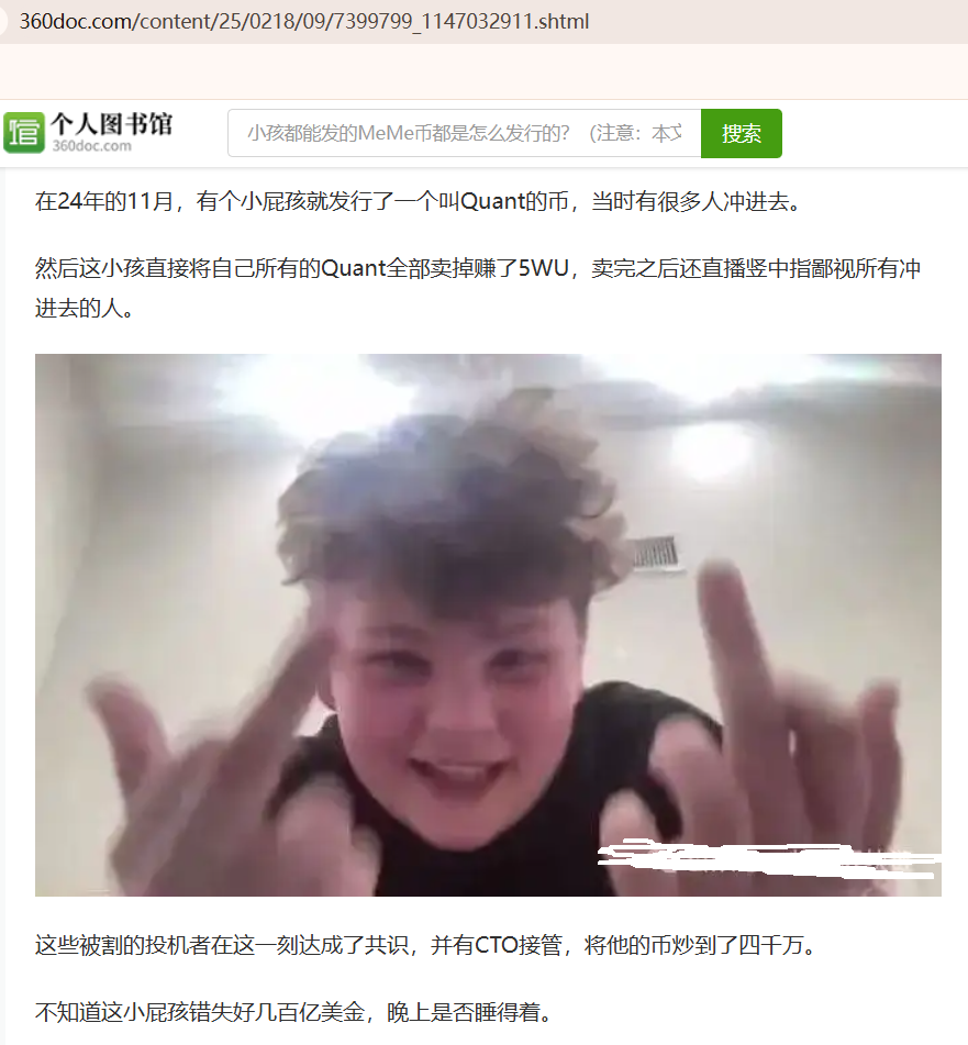 先说第一个半年前旧闻:一个13岁孩子在SOL公链上自行铸币后交易,有了交易额后清仓怒赚35万人民币并对购买他代币的交易者们竖起了中指嘲笑韭菜们。然而,社群里立刻抱团反击将他卖飞的Quant币怒炒上亿,让这个小孩哥感受一下错失登上富豪榜的机会。