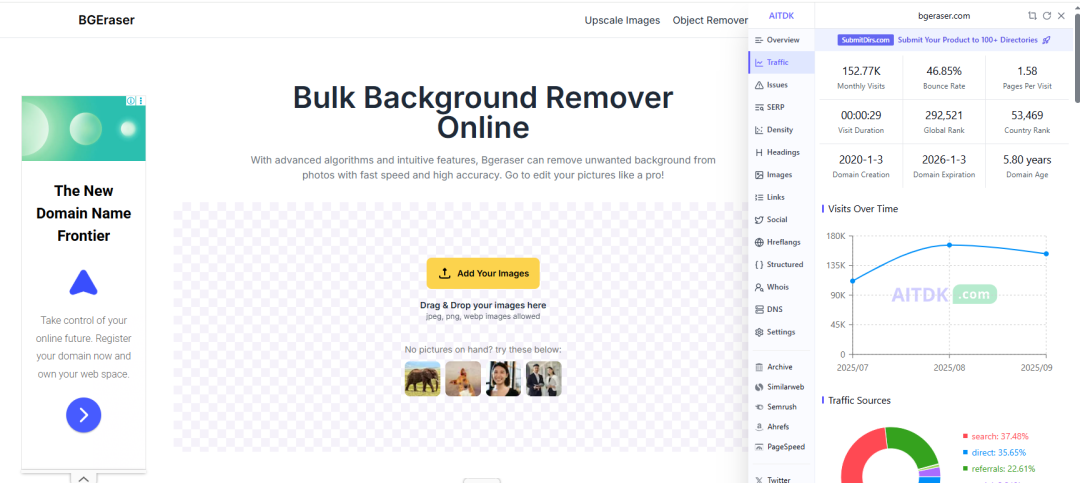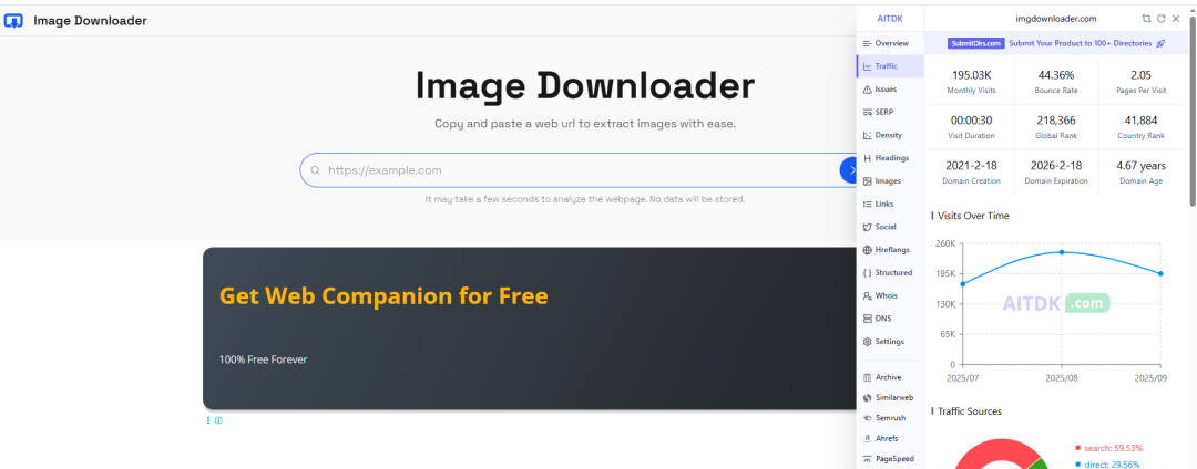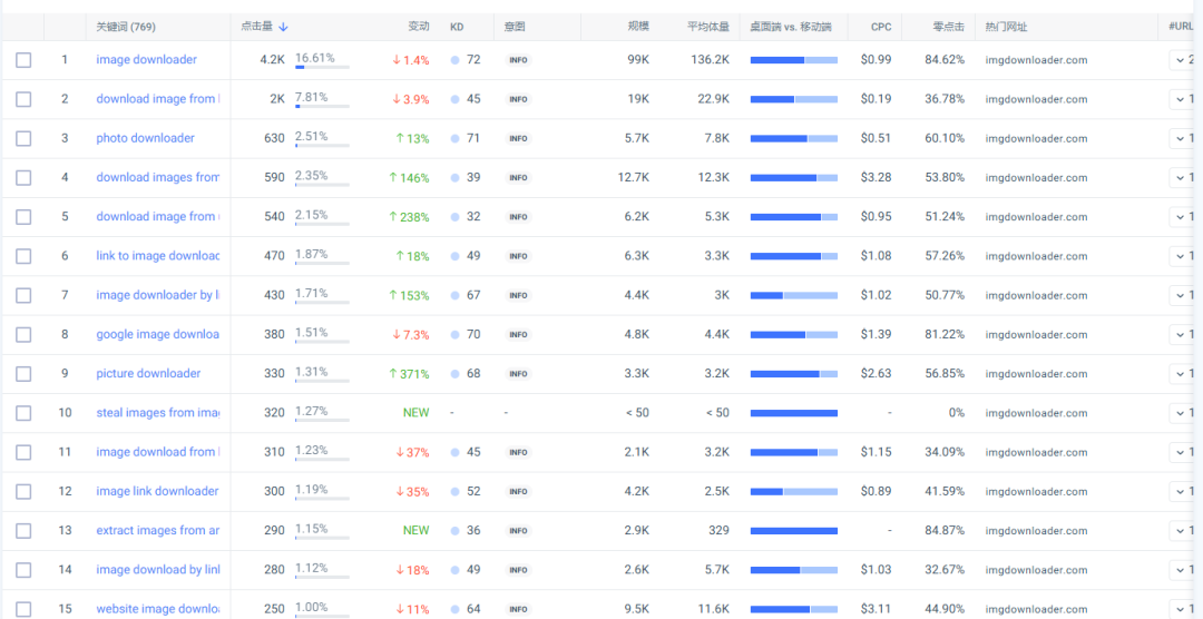 我们可以看到流量最多的关键词是image downloader, 然后是download image from link. 就一个首页一个月就可以有20万的流量,所以不要看不上简单的网站,只要是解决了用户的问题,那它就是一个好网站。