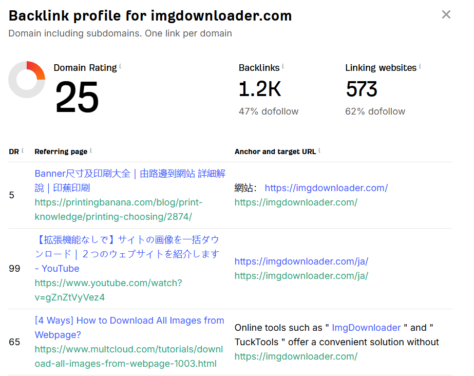 首页就只有Hero, Feature, FAQ, Footer就没有了,够简单吧?一个首页再加Terms, Privacy就完事儿了,它有做多语言,多语言的页面也和英文的页面是完全一样的,也就是这几个简单的页面一个月有20万的流量,我们来看下它的外链:
