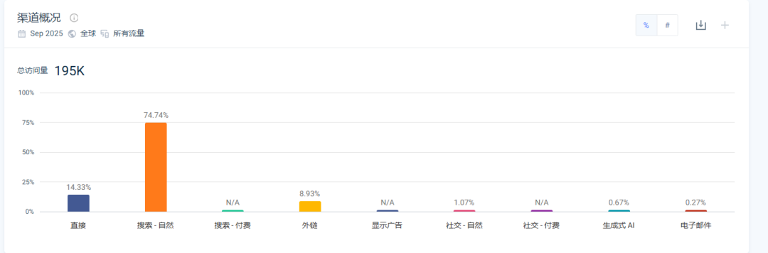 这个域名是2021年注册,现在一个月流量将近20W,最重要的是它只有一个页面,我们来看下它的首页: