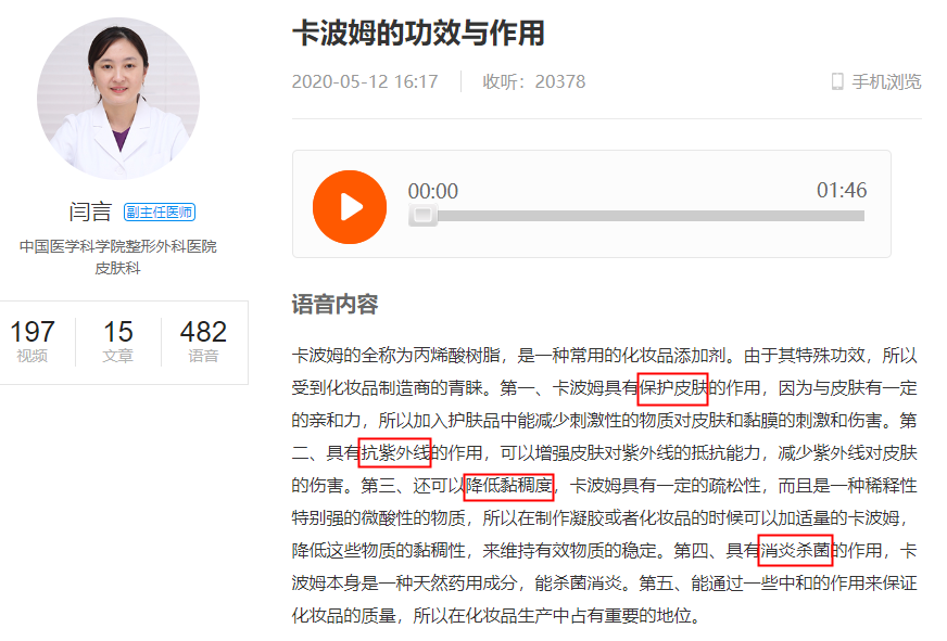 主要成分就三种:亲水性高分子材料(卡波姆)、氯化钠、纯化水等组成。