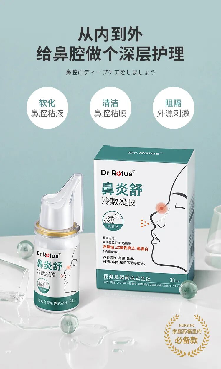 通过亲水性高分子凝胶挤压喷射,直接渗透在鼻腔深处,疏通鼻腔里的分泌物。