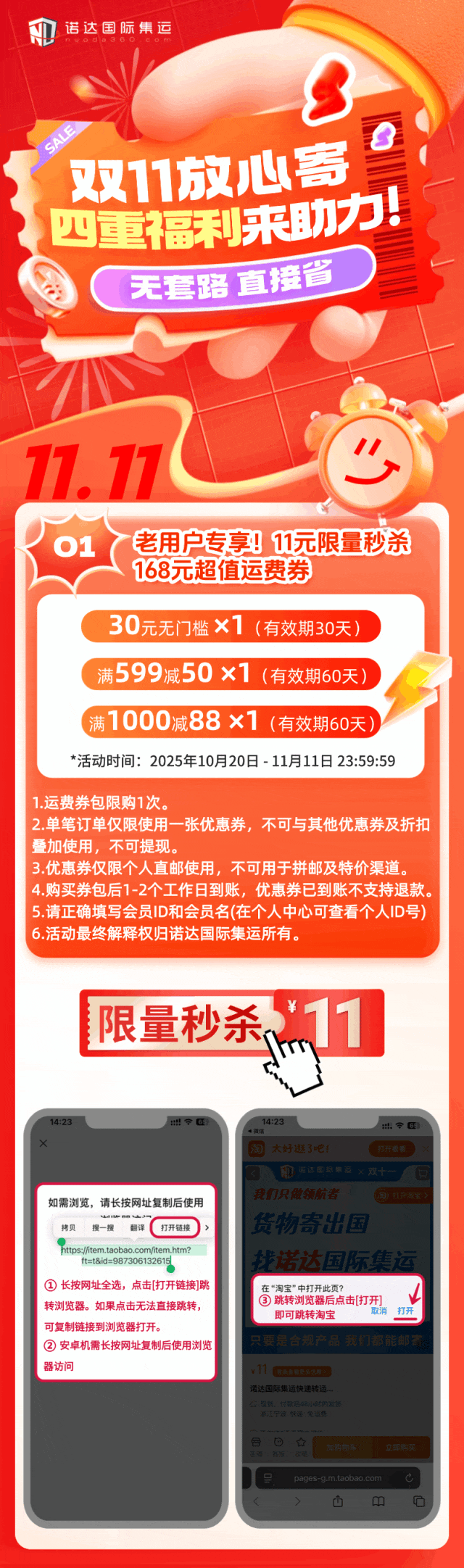 双11剁手不愁寄!诺达四重福利这样领,运费直接打骨折!