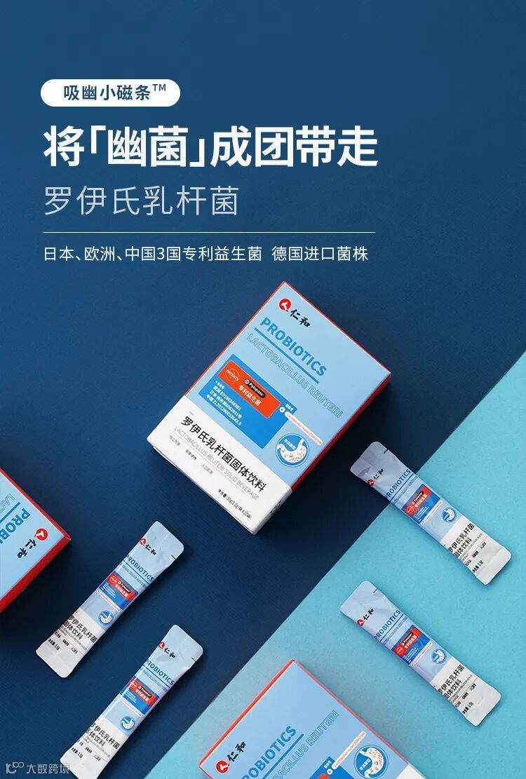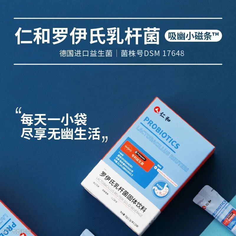 除此之外,仁和还推出了——仁和罗伊氏乳杆菌固体饮料,让你在防治肠胃菌群失衡的问题的同时,还能够防治幽门螺杆菌。