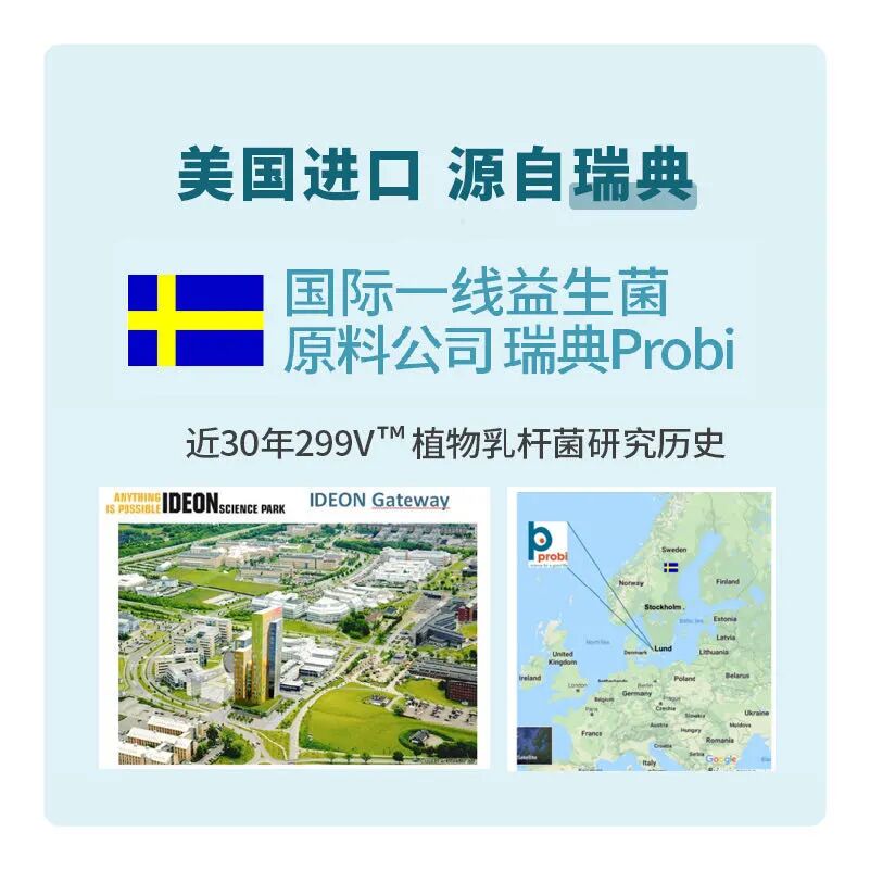 采用美国进口专利菌株——299V™植物乳杆菌,一种经过几十年科研+临床验证的有效菌株,成熟且安全。