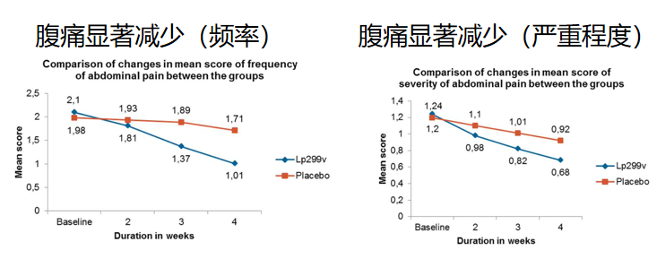 研究人员在对200名肠易激综合征患者进行临床研究,数据显示,每天服用100亿CFU,连续服用28天后,80%腹痛得到明显改善
