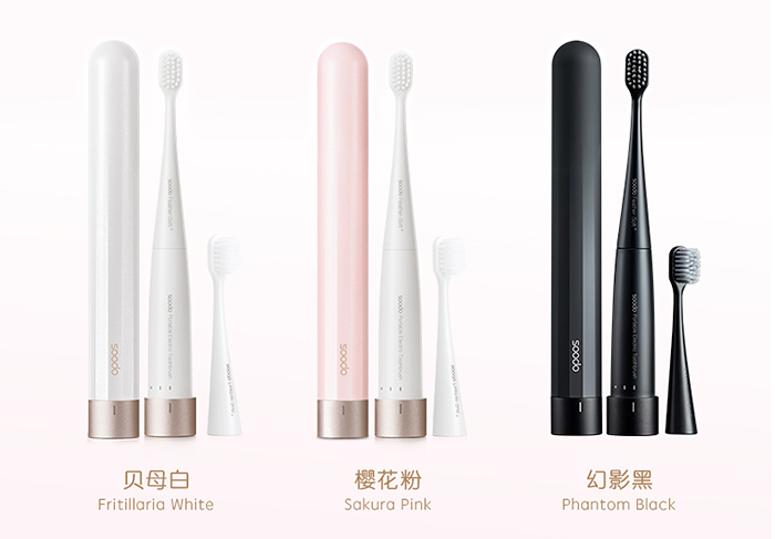 这款电动牙刷外壳一共有黑色、粉色、白色, 3 种颜色。