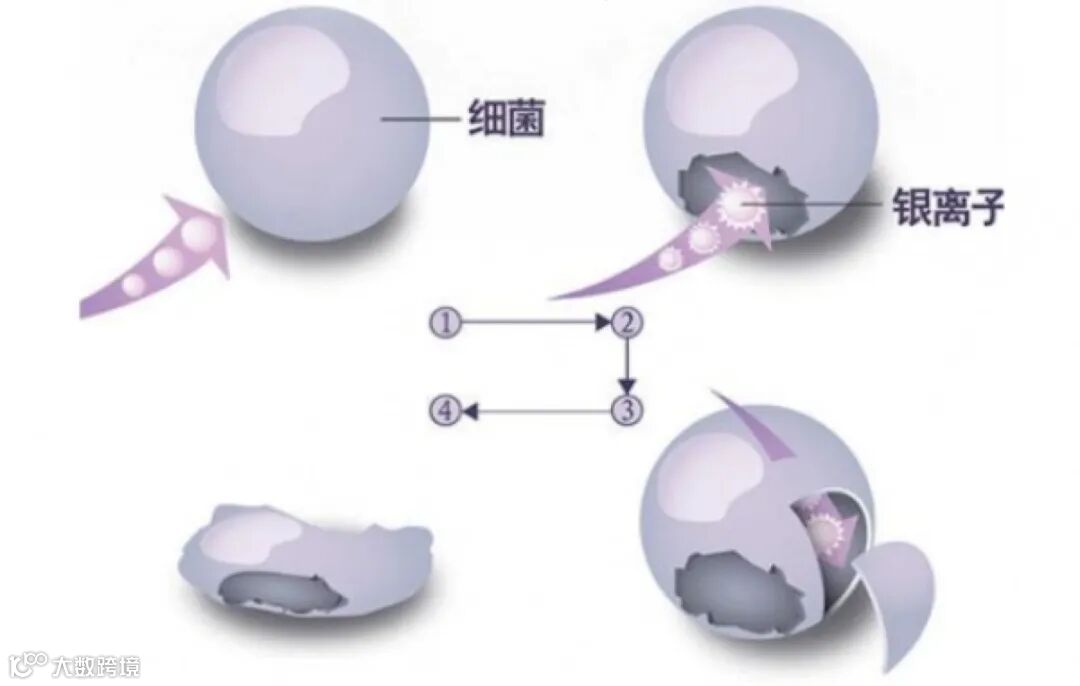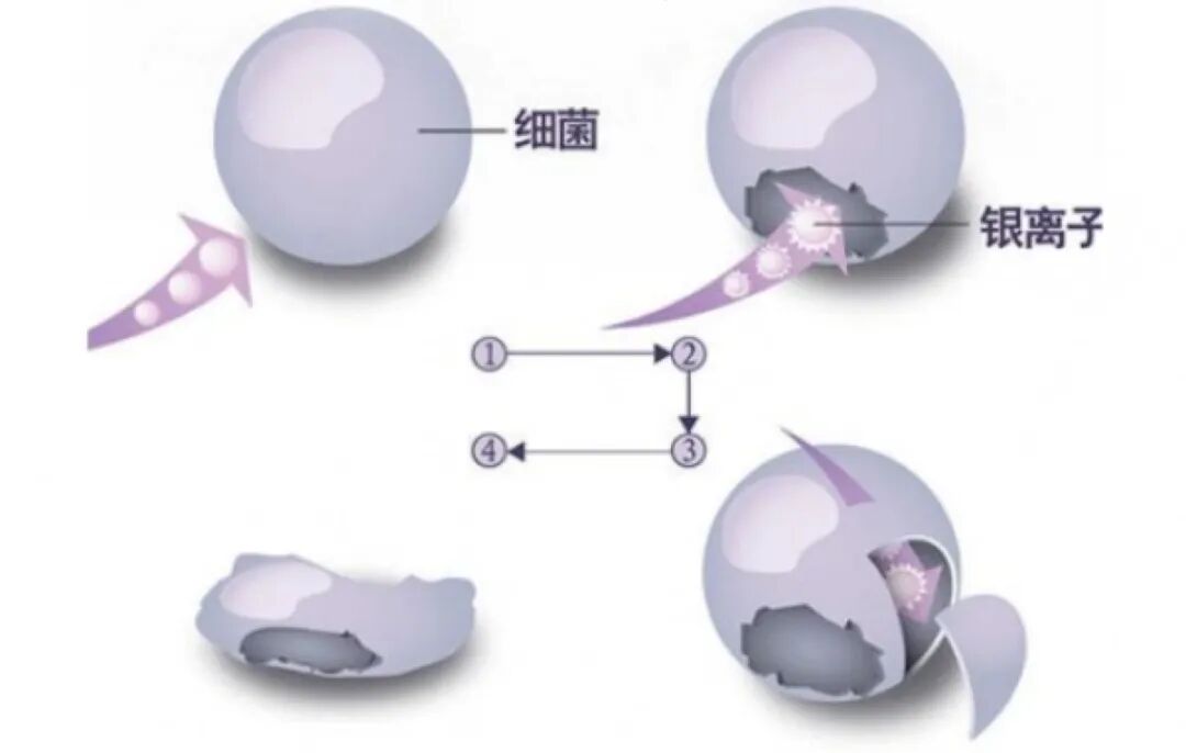由于银单质带正电荷的离子,能吸附细菌并逐步进入其体内,所以能使细菌失去代谢能力而死亡。