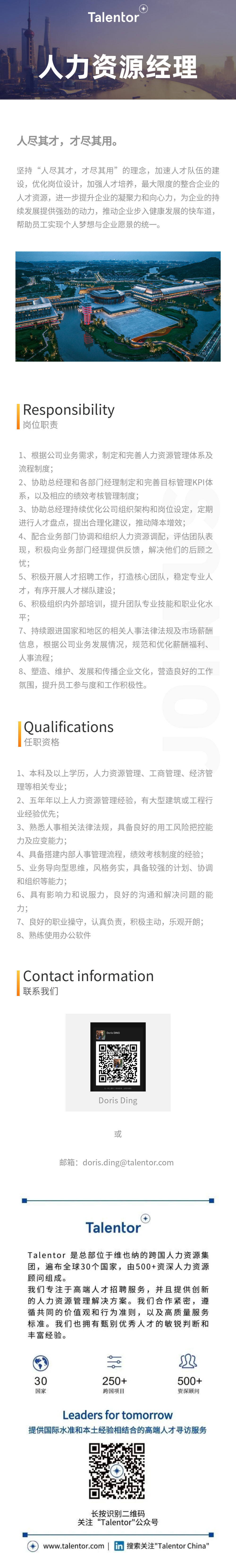 Talentor 是总部位于奥地利维也纳的跨国人力资源集团公司,遍布全球30个国家,由500+资深人力资源顾问组成。我们专注于高管搜寻、专业人才招聘,并且提供创新的人力资源管理解决方案。