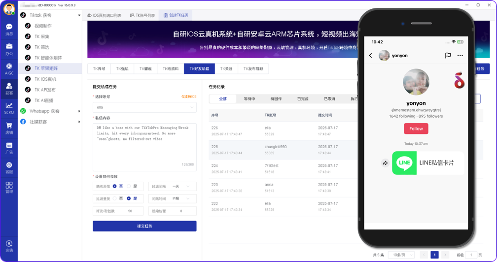 官方API矩阵发布:批量登陆TK账号,绑定TK官方API,200天不掉线,批量定时发布