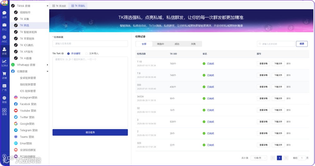 构建从TikTok流量到私域成交的直达通道,不仅解放人力,更关键的是提升转化效果。当别人还在费力搬运内容、手动跟进客户,你已经实现碾压级的跑量效率,快速抓住精准流量。流量红利稍纵即逝,早一步自动化,就能提前锁定精准客户,夯实私域基础。把优质客户握在手中,让生意稳健增长、持续爆发。