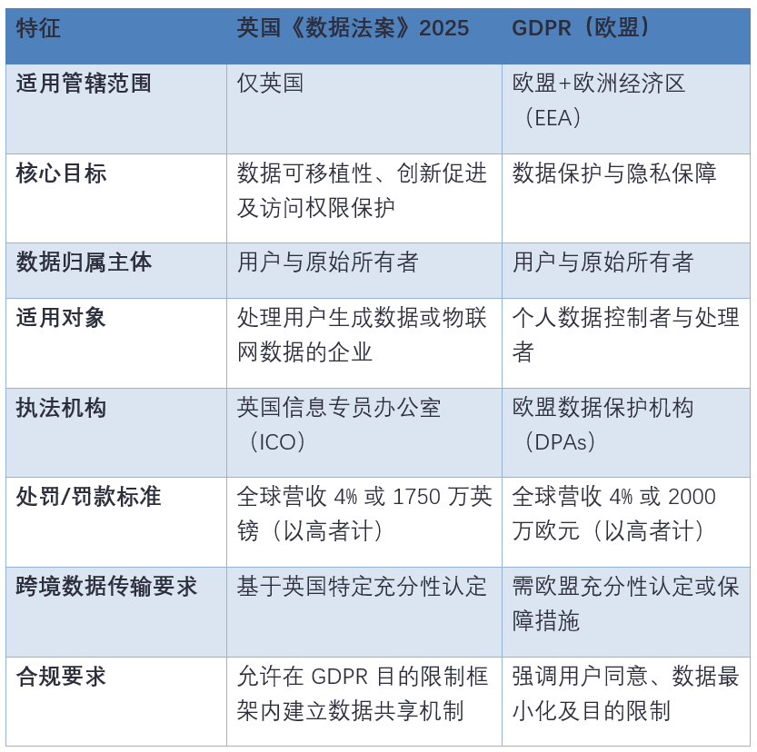 英国《数据使用与访问法案》与《通用数据保护条例》(GDPR)对比