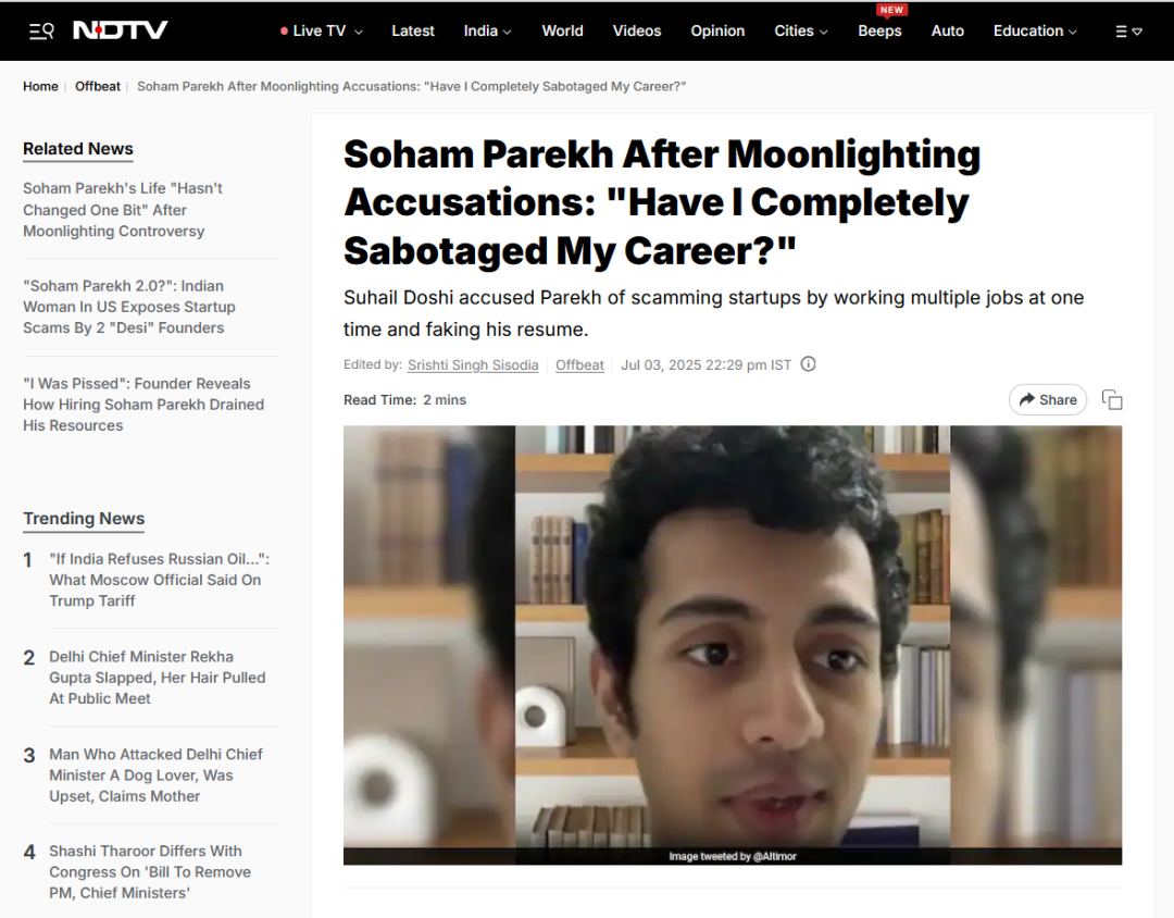 7月初,印度籍软件工程师Soham Parekh因被指控同时在3-4家美国初创公司任职并伪造简历,引发全球科技行业对远程用工风险的关注。Mixpanel和Playground AI联合创始人Suhail Doshi公开揭露了这一事件,称Parekh专门瞄准Y Combinator孵化的公司进行欺诈活动。Parekh持有佐治亚理工学院计算机科学硕士学位,却在入职一周内被发现虚构工作经历,且在被解雇后仍继续以虚假身份求职。