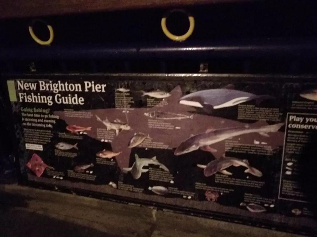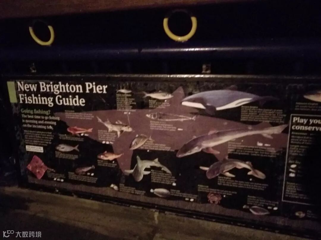 一旁的指示牌上,说明了这片海域能够钓到的鱼,有狗鱼、鲨鱼甚至魔鬼鱼。 在Pier的尽头,还有供处理鱼的简易平台,有按压的自来水,从使用痕迹判断出刚刚才有人在这里收拾了一条大鱼。