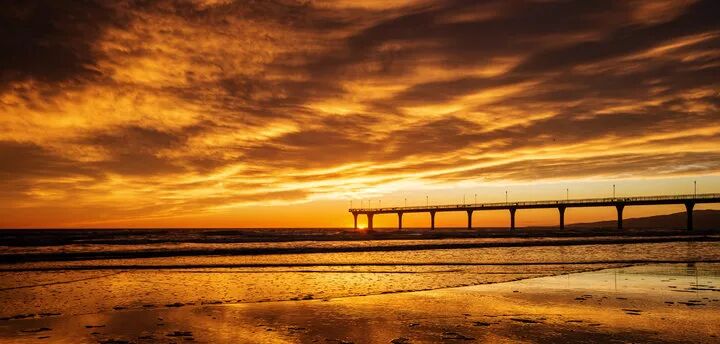 虽说没有去什么景点,但朋友还是带着我在城里及附近逛了逛。有天晚上我们心血来潮,就开车去了海边这个叫New Brighton Pier的地方看海。所谓Pier其实就是人工修建的栈桥,伸进海里几百米。