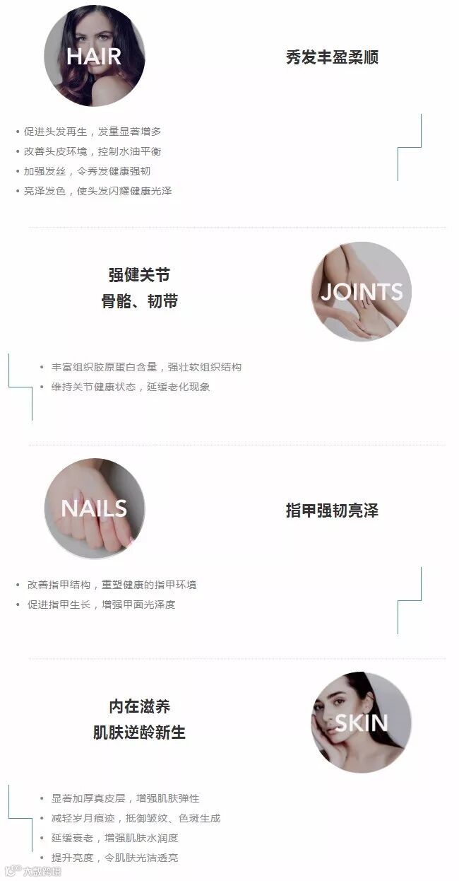 解决:皱纹明显/指甲易断裂/头发无光泽,或需 在短期内容光焕发,或健身增肌需要