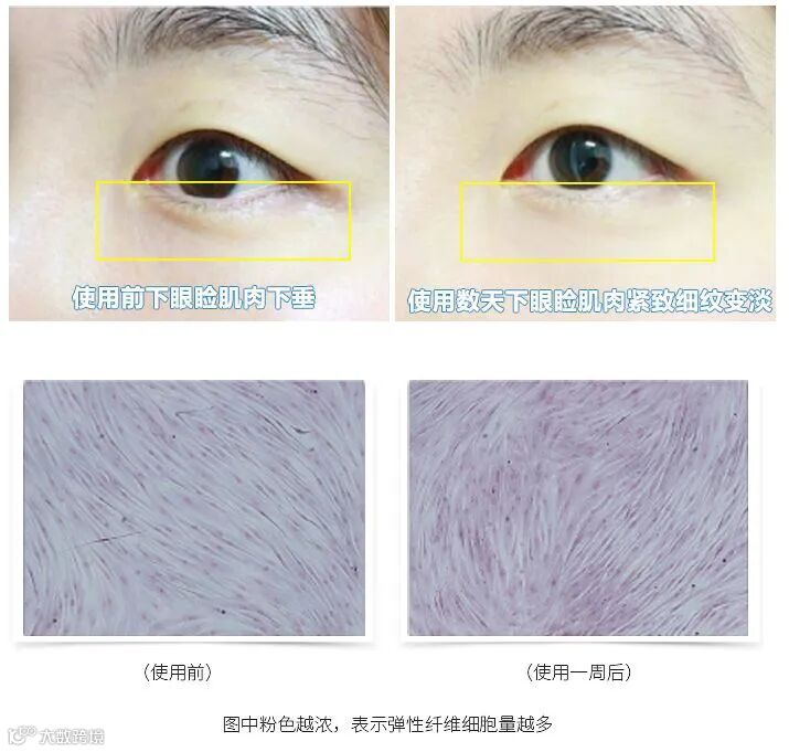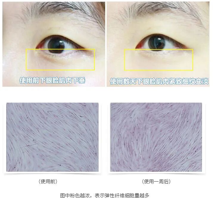 寡肽-5加速眼周上皮细胞代谢,清空已经老化、受损断裂的弹性纤维细胞,促进胶原蛋白产生,充盈肌底细胞,淡化眼周纹路!