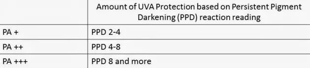 防晒指标时日本化妆品工业联合会公布的,防止UVA紫外线的有效程度指标,分为4级:+、++、+++、++++。一个加号,意味着延长2-4倍的防晒时间。