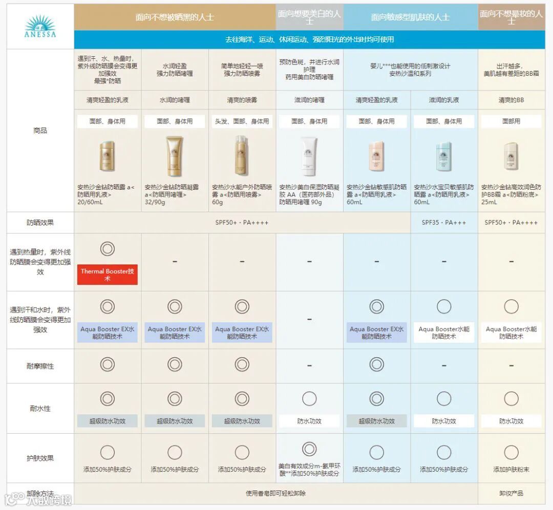 选择最适合自己生活方式,SPF/PA指数最佳综合的防晒霜。