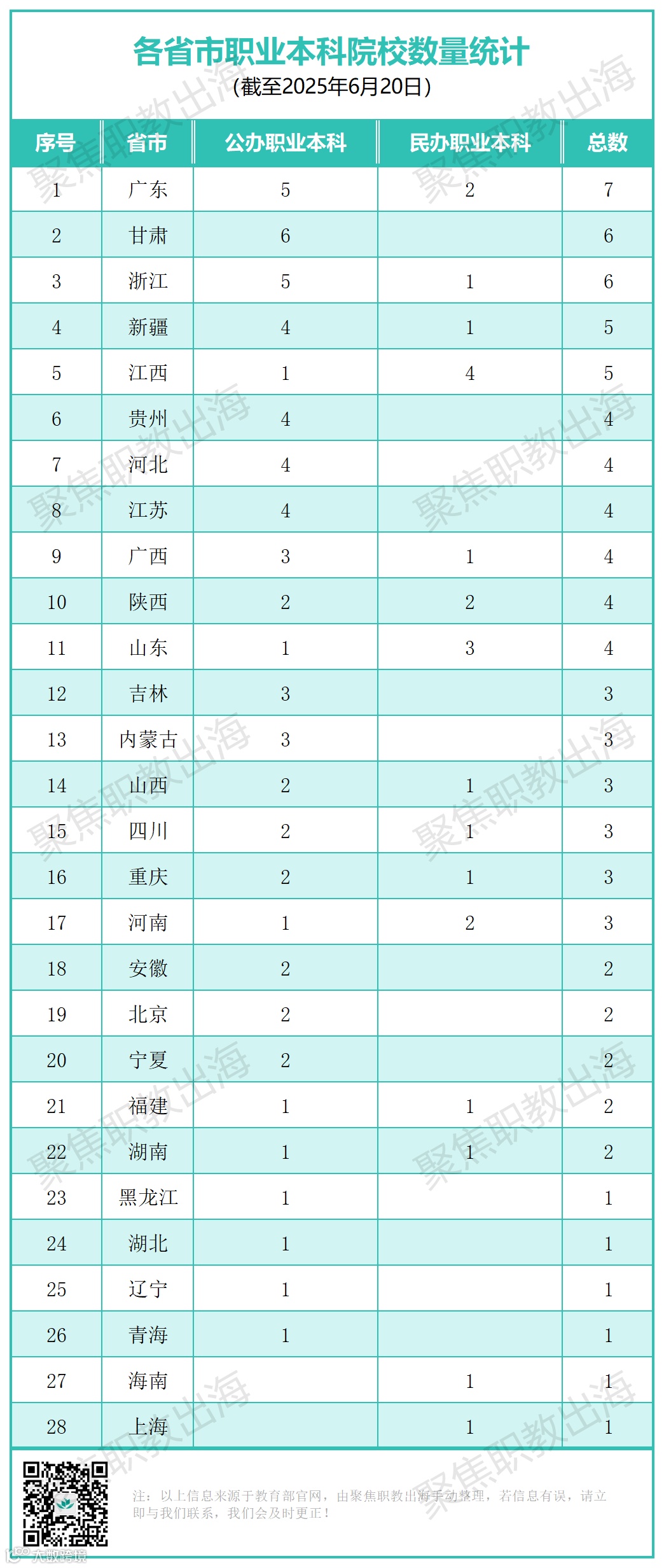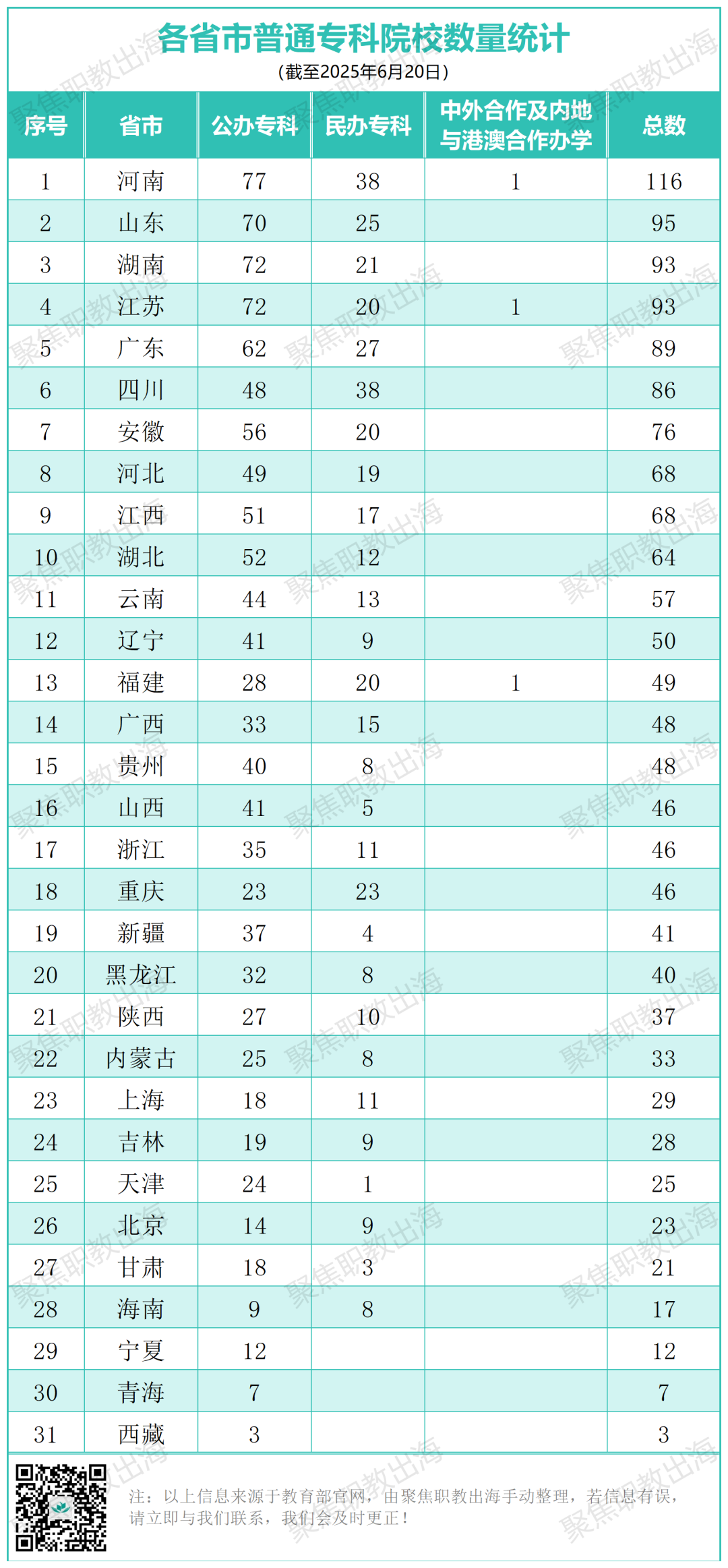 关注【聚焦职教出海】公众号,对话框回复“院校名单”获取完整公办/民办专科院校名单!